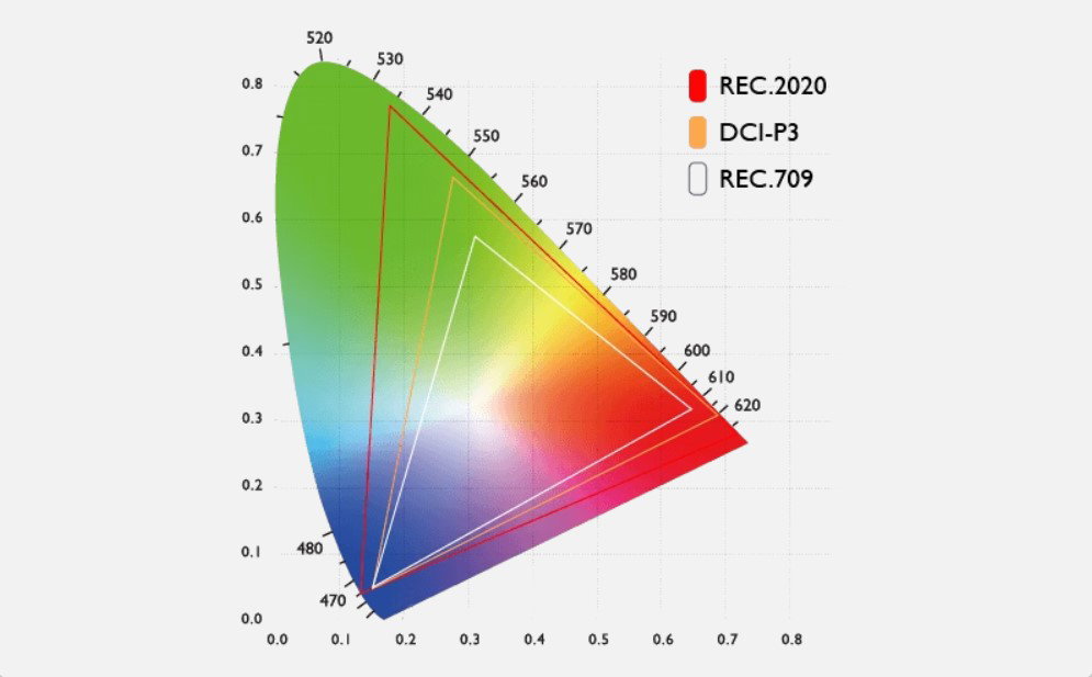 Caption: Gamut comparison on the CIE diagram: Traditional RYB thinking is limited compared to modern RGB (additive) or CMY (subtractive) models.